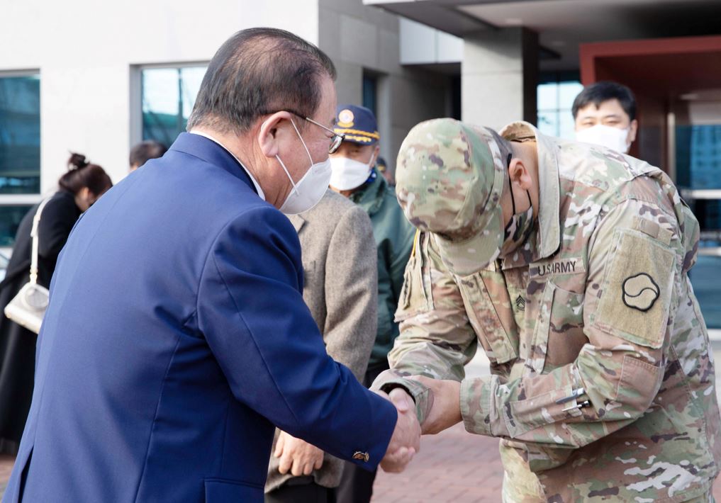경북 칠곡군 왜관읍 주한미군 물자지원여단 소속 장병들은 2월 10일 칠곡군 보훈회관을 찾아 형편이 어려운 참전용사 37명에게 종합 비타민과 간식류 등 선물을 전달했습니다.