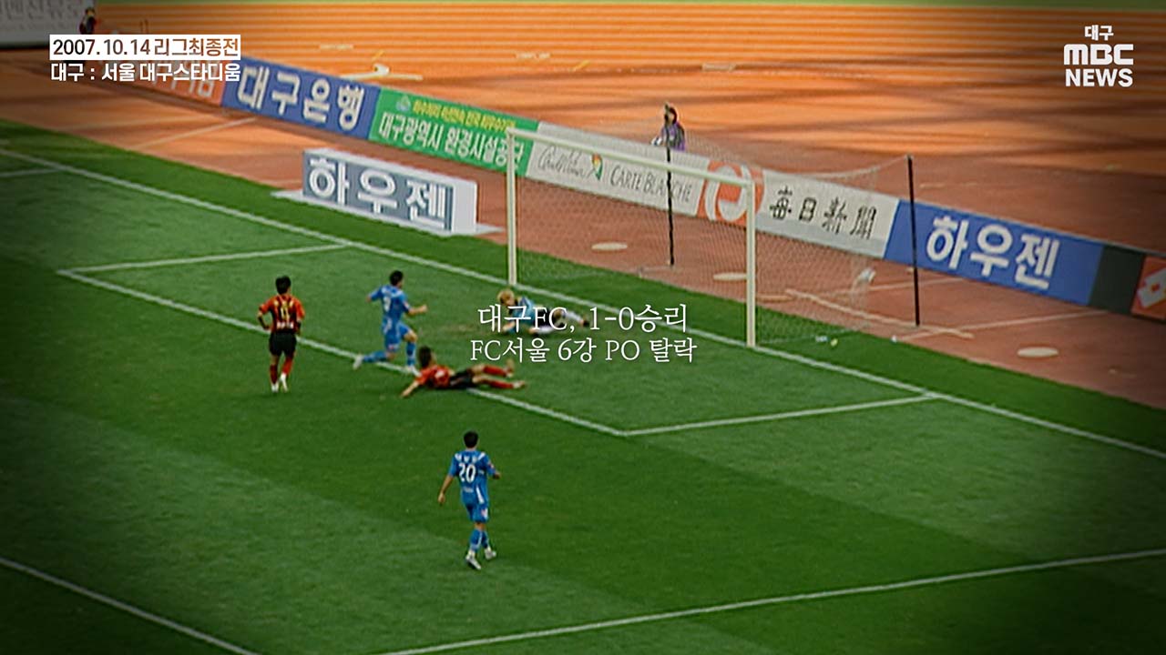 두 팀이 서로에게 아픔을 주고받은 역사의 시작은 아마 2007년 리그 최종전으로 거슬러 올라가야 할 거 같습니다. 당시 K리그는 6위 팀까지 가을 축구가 가능한 6강 플레이오프가 존재했는데요. 리그 마지막 라운드에서 비기기만 해도 6위를 지킬 수 있던 서울의 상대 팀은 대구였습니다.