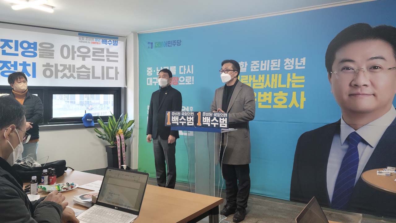 대구 중남구 국회의원 보궐선거에 출마한 민주당 백수범 후보가 대법원을 대구로 이전하겠다는 공약을 발표했습니다.