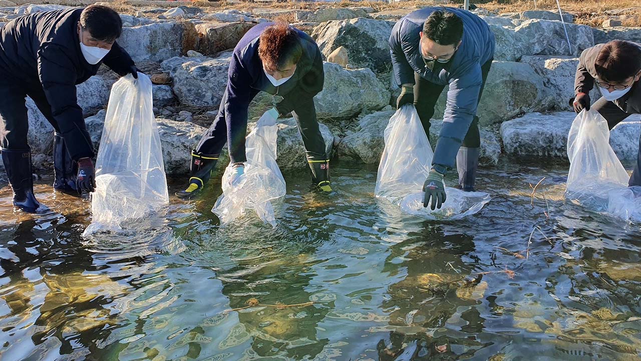 경상북도 민물고기연구센터가 2월 24일 울진 왕피천에 어린연어 90만 마리를 방류합니다.