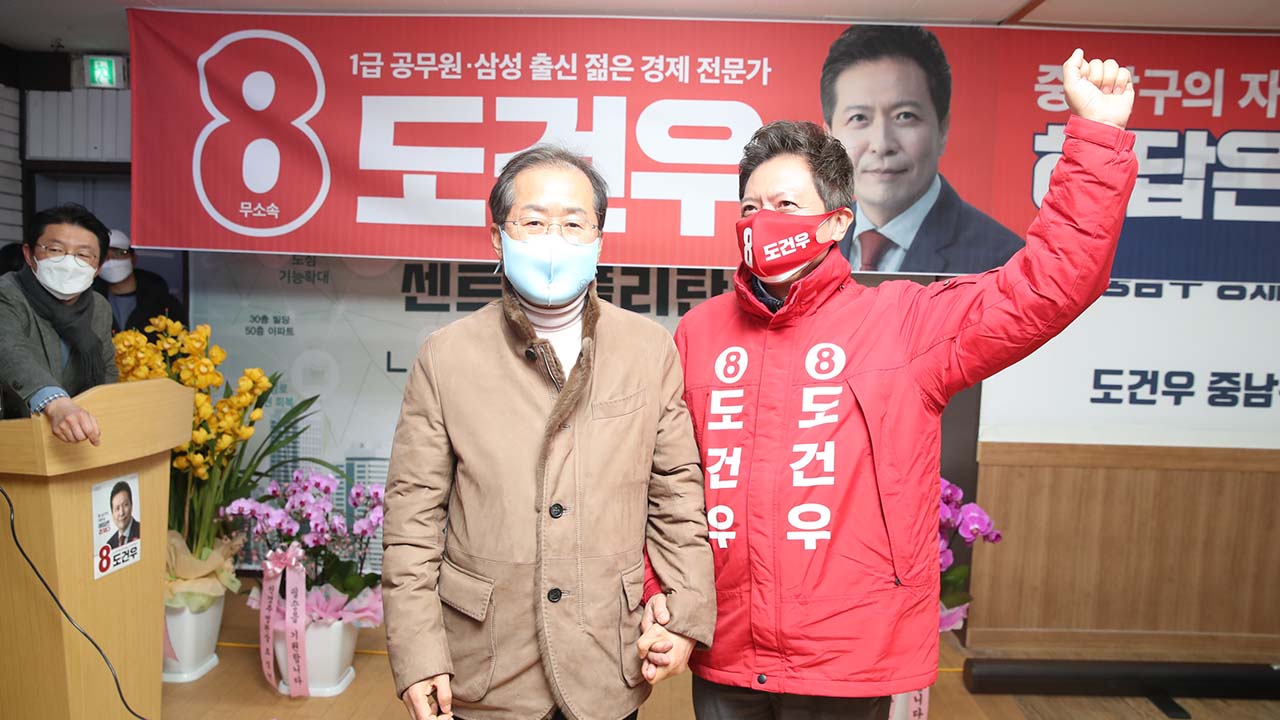 대구 중남구 보궐선거에 출마한 무소속 도 후보 출정식에 참석한 이유에 대해서 홍 의원은 "정치적으로 도움을 받은 사람에 대한 도리"라고 밝혔습니다.