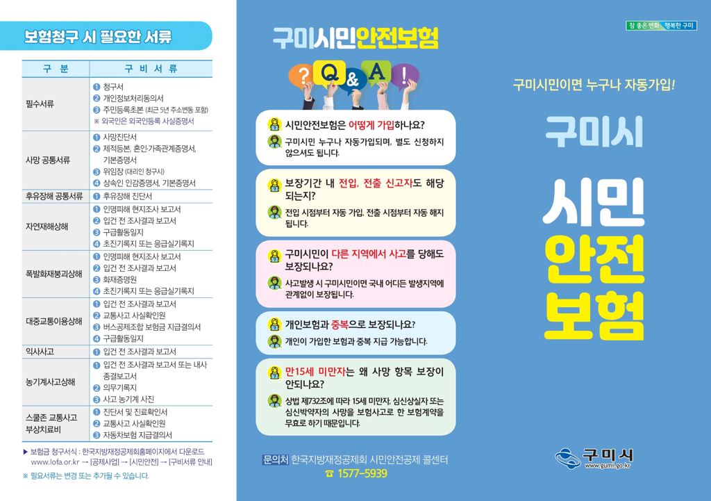 구미시는 시민이 각종 재해와 재난사고 피해를 보상받을 수 있도록 시민안전보험에 가입했다고 밝혔습니다.