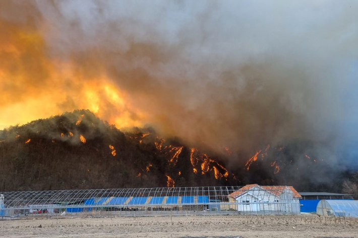 경북 울진군의 야산에 불이 나 소방청이 전국 소방 동원령 1호를 발령하고 진화 작업을 하고 있습니다.
