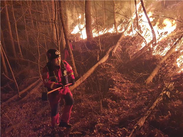 산림과 소방 당국은 50대 헬기를 비롯해 산불 진화차 372대, 진화대원 4천 100명 인력을 투입해 진화를 하고 있습니다.
