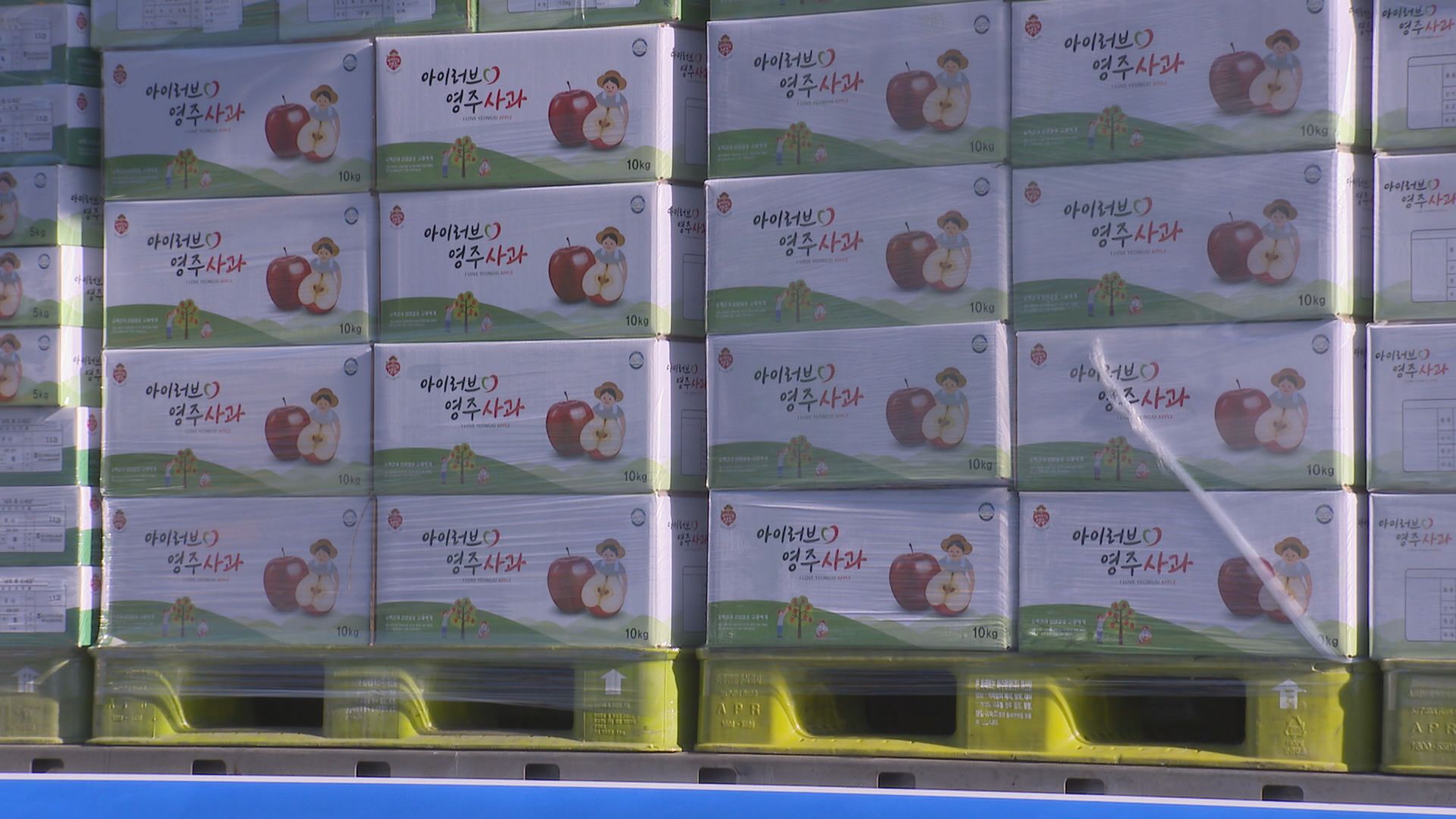 영주시 농산물 통합 브랜드인 '아이러브 영주'의 사과 90톤이 전국 홈플러스 매장 138곳에 출하됩니다.