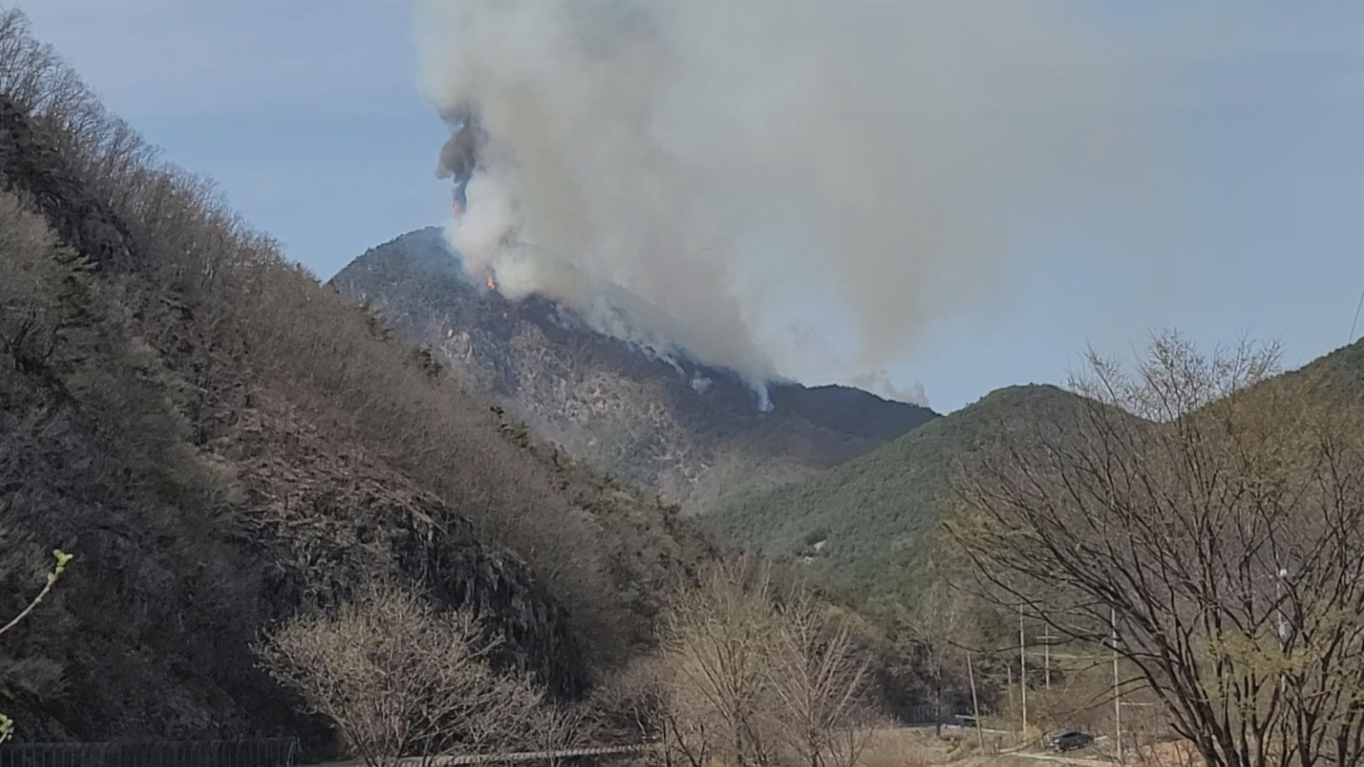 4월 10일 오후 1시 10분쯤 경북 군위군 삼국유사면 화북리 옥녀봉 일대에서 난 불이 계속 확산하고 있습니다.
