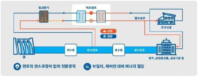 수열 에너지 사업은 2050 탄소중립 추진전략 중 건물 부분 정책으로 기존 원수관로와 취수시설로 수열에너지를 생산해 건축물에 공급함으로써 에너지 비용을 절감하는 것입니다.