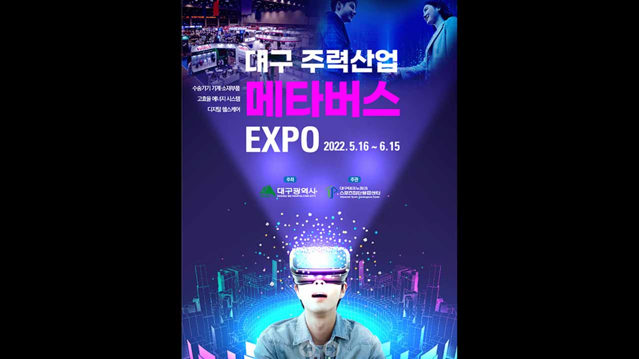대구시와 대구테크노파크는 공동으로 5월 16일부터 6월 15일까지 메타버스 가상공간과 대구테크노파크 스포츠 첨단 융합센터에서 각각 온라인과 오프라인으로 '대구 주력산업 메타버스 엑스포'를 엽니다.
