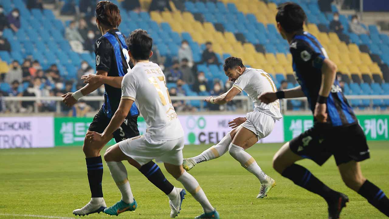 리그 선두권에 이름을 올린 인천을 상대로 한 원정에서 대구는 전반 세징야의 코너킥을 머리로 연결한 홍정운의 선취골로 앞서갔지만 전반 추가 시간 리그 득점 1위 무고사에게 동점을 허용했습니다.