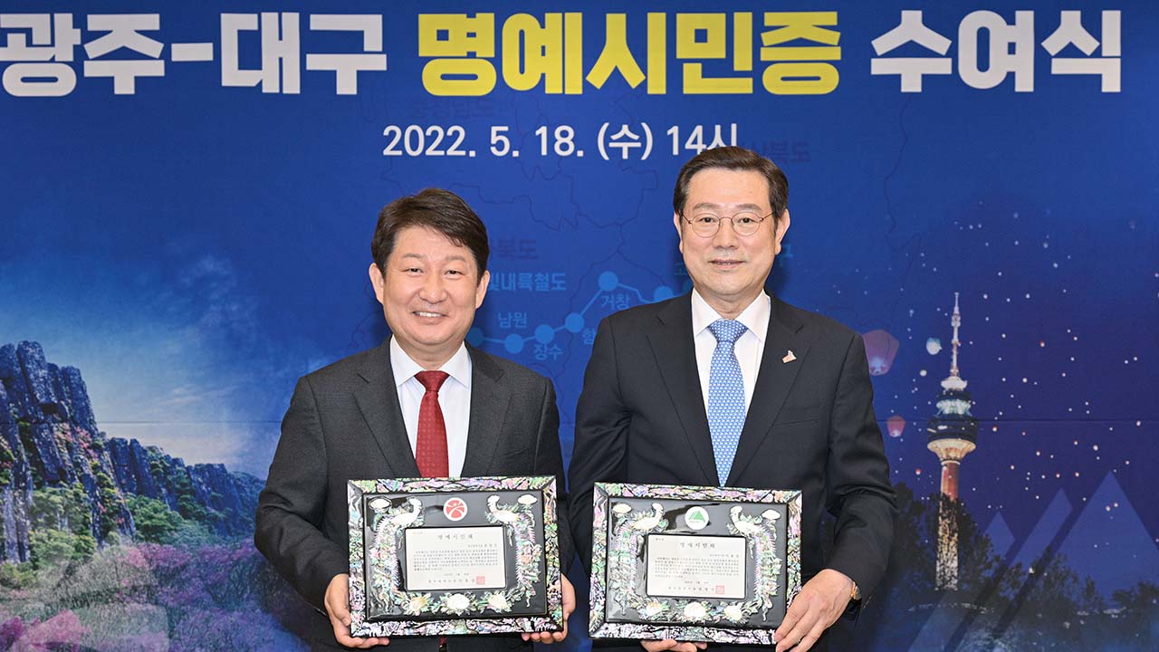 기념식이 끝난 뒤 광주시청에서는 대구시, 광주시 명예 시민증 전달 행사가 열렸습니다.