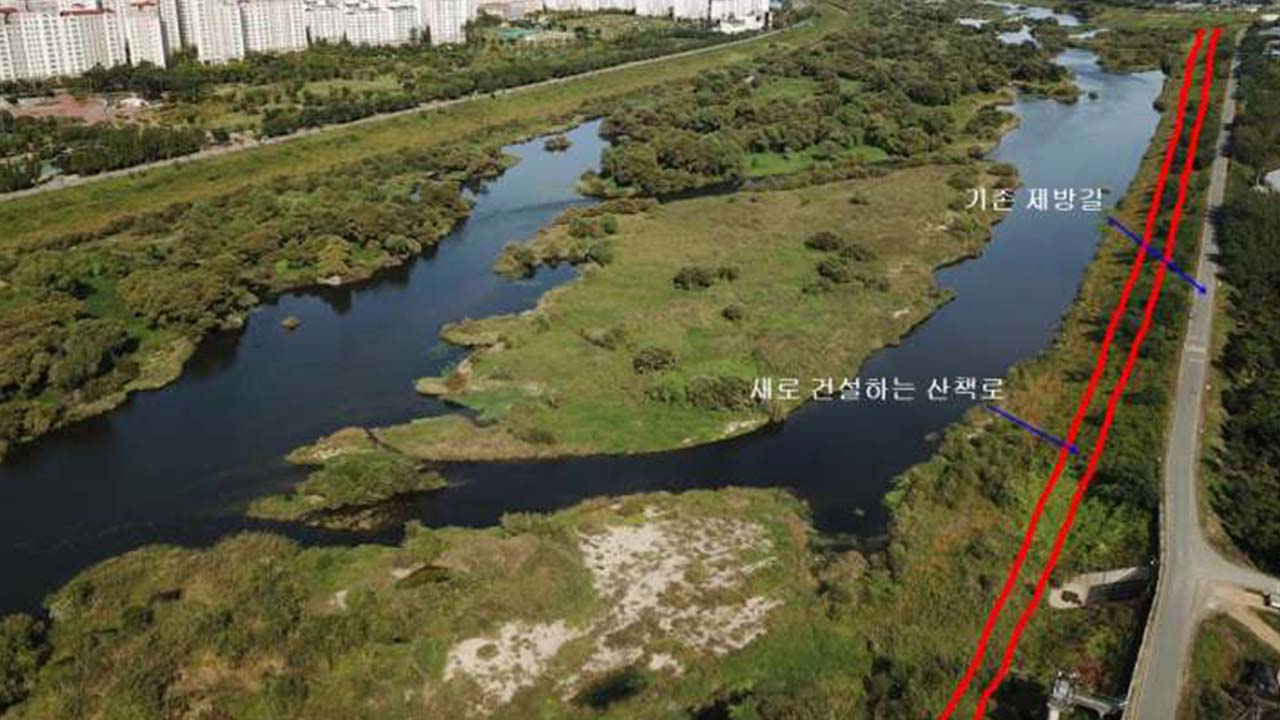 성명을 통해 "금호강 제방길과 자전거 도로가 있는데도 수성구청이 금호강에서 환경을 훼손하는 반생태적인 산책로 공사를 벌인다"고 주장했습니다.