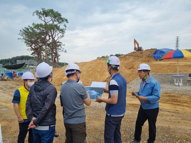 칠곡군이 칠곡 지역 건축사회 안전지킴이와 함께 건축 공사장의 안전사고 예방을 위한 점검을 합니다.