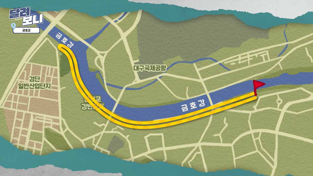 코로나19 사태 이후, 2021년 비대면 방식의 마라톤을 통해 다시 뛰는 육상도시의 면모를 보여준 대구. 언택트로 펼쳐진 일반 참가자들의 대회는 2021년에 이어 2022년에도 펼쳐졌습니다. 각각 저마다의 자리에서 '대구마라톤 전용 앱'으로 10km 이상을 달리는 것이 대회의 참가 요건이었죠. 그리고 비대면 대회의 아쉬움을 극복하기 위해 일부 참가자들에 대해 오프라인 대회 참여 기회를 부여했습니다. 2021년과 2022년, 일반 마스터즈 참가자들이 모여 달렸던 코스가 바로 동천 유원지를 출발점으로 둔 금호강 코스였는데요. 지난번 대구스타디움 코스에 이어 두 번째로 소개할 코스가 바로 '금호강'입니다.
