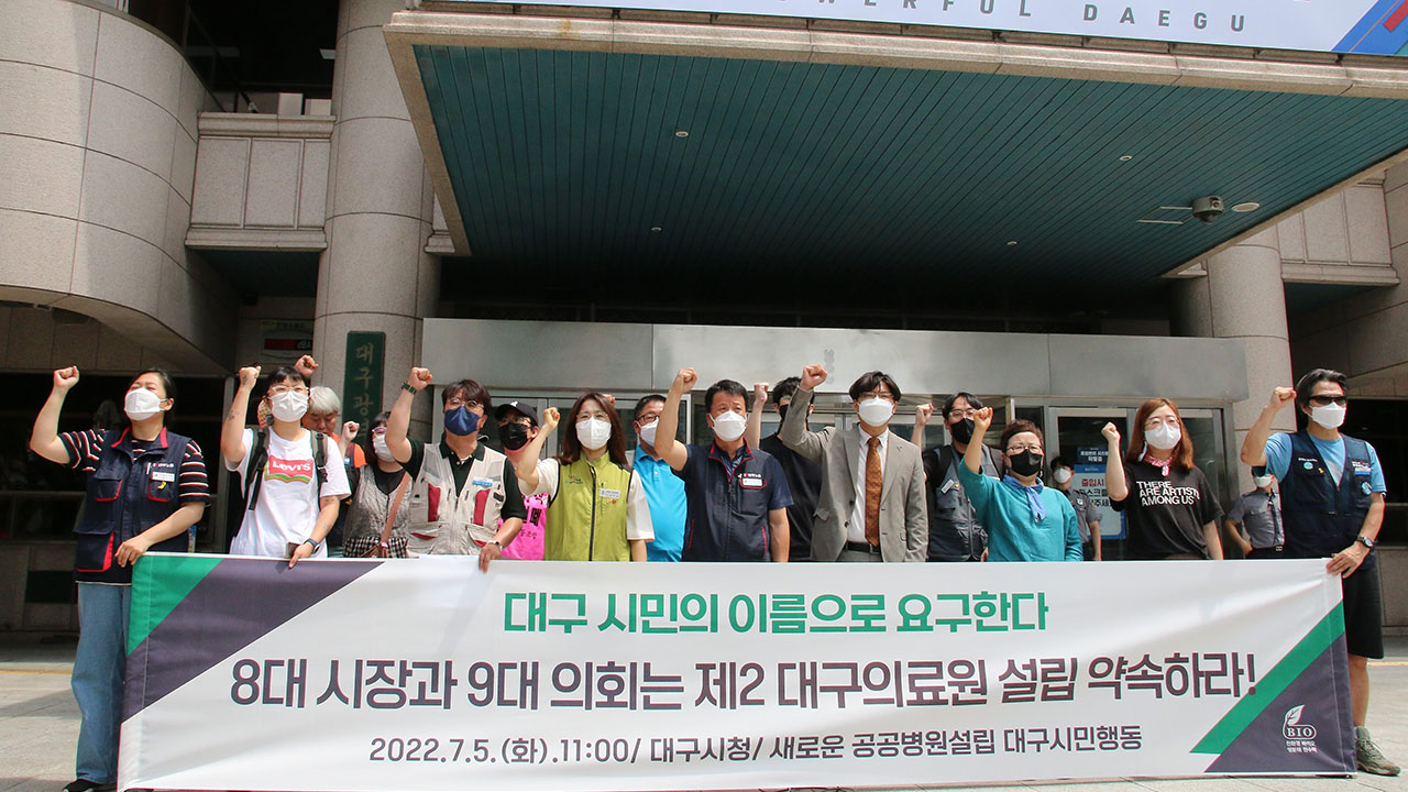 대구시민행동은 홍준표 대구시장에게 "제2 대구의료원을 재검토하기로 한 정책을 철회하라"고 요구하고 대구시의회에는 설립 결의안 채택을 촉구했습니다.