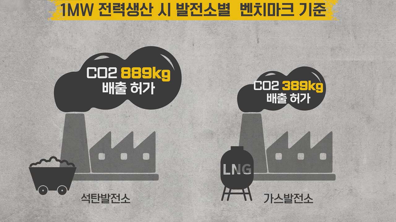 여기에다 석탄 발전소에서 1MW의 전력을 생산할 때 이산화탄소를 889kg까지 배출할 수 있게 한 반면 온실가스 배출량이 석탄 발전소에 비해 상대적으로 적은 가스 발전소는 389kg까지만 배출할 수 있게 설정되어 있습니다.