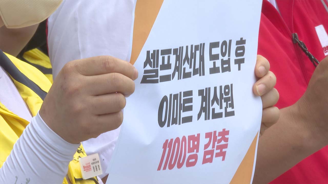 박선영 마트산업노조 이마트 대구경북본부장 "설치했으니 그럴 수 있다고 칩시다. 그런데 그다음이 기가 막힙니다. 사람들의 계산대 투입 근무 스케줄을 조정하고 일반계산대를 줄여서 열라고 지시하고 있습니다.
