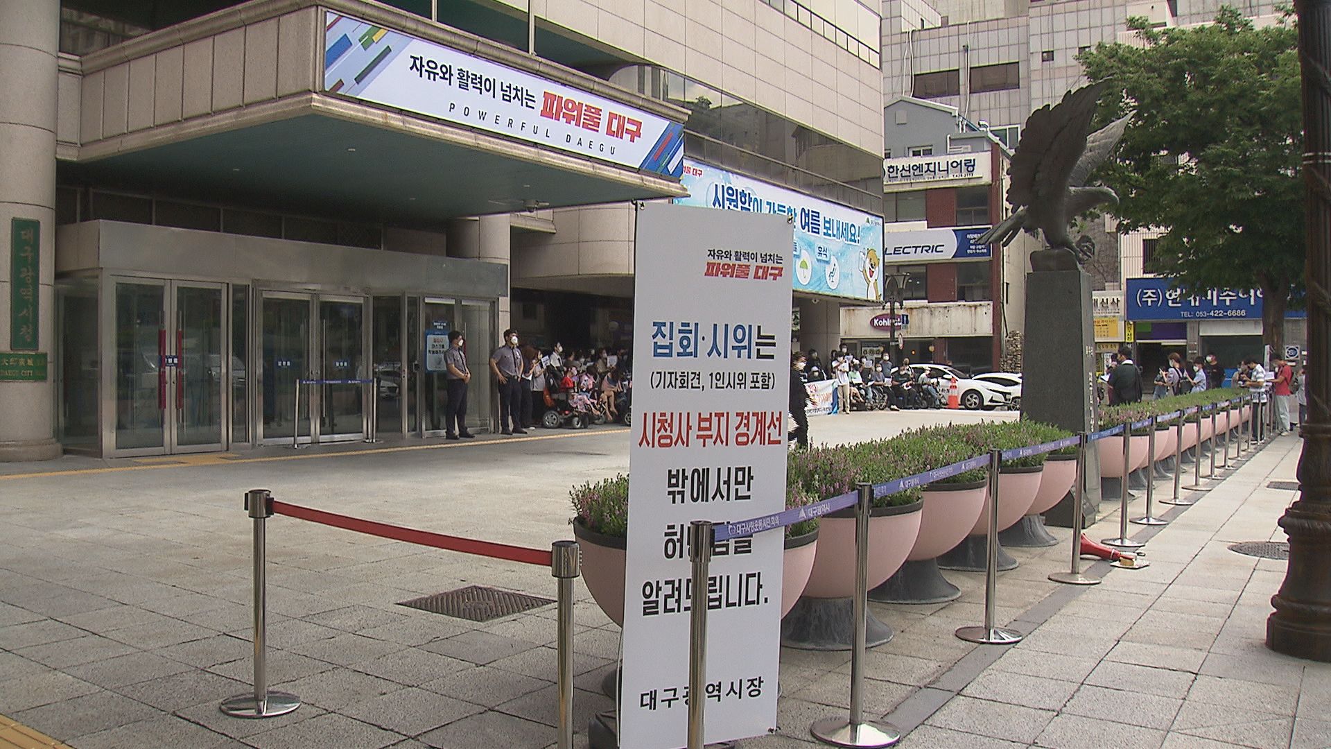 대구시는 "동인 청사 앞마당은 시청 부지"라며 "청사를 출입하는 직원과 민원인 편의를 위해 집회·시위는 청사 부지 밖 인도나 도로 건너편으로 유도하고 있다"고 밝혔습니다.