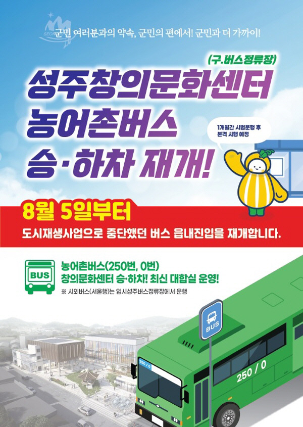 2년간 중단됐던 옛 성주 버스정류장의 농어촌 버스 승·하차가 8월 5일부터 재개됩니다.