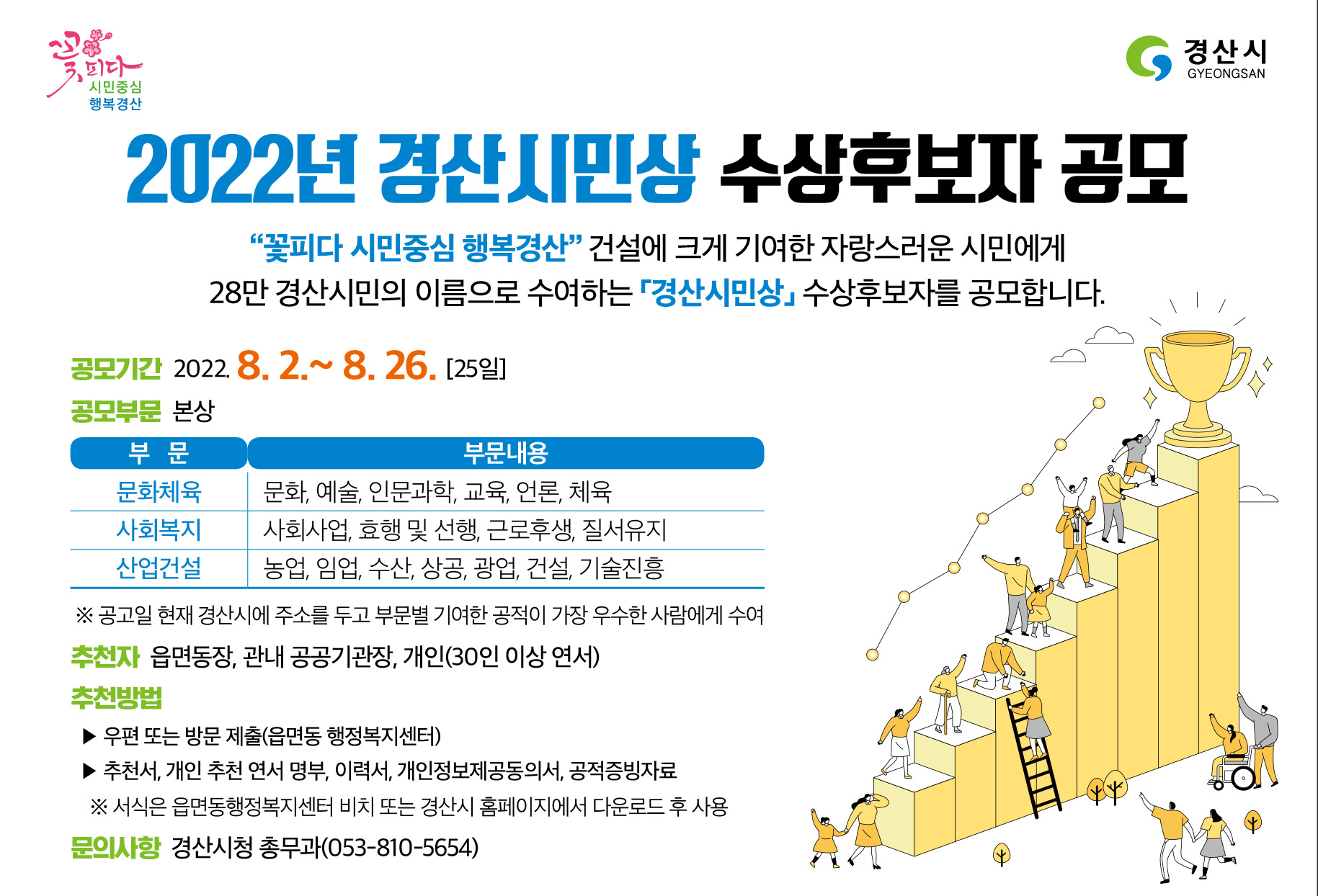 경산시가 2022년 경산 시민상 수상 후보자를 공모합니다.