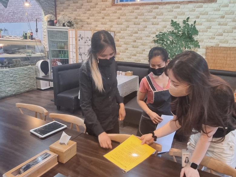 외국인 업주에게 식품 취급 기준과 식품접객업 시설 기준, 영업자 준수사항 등을 안내하는 등 식품위생법 안내를 해주며 9월까지 진행합니다.