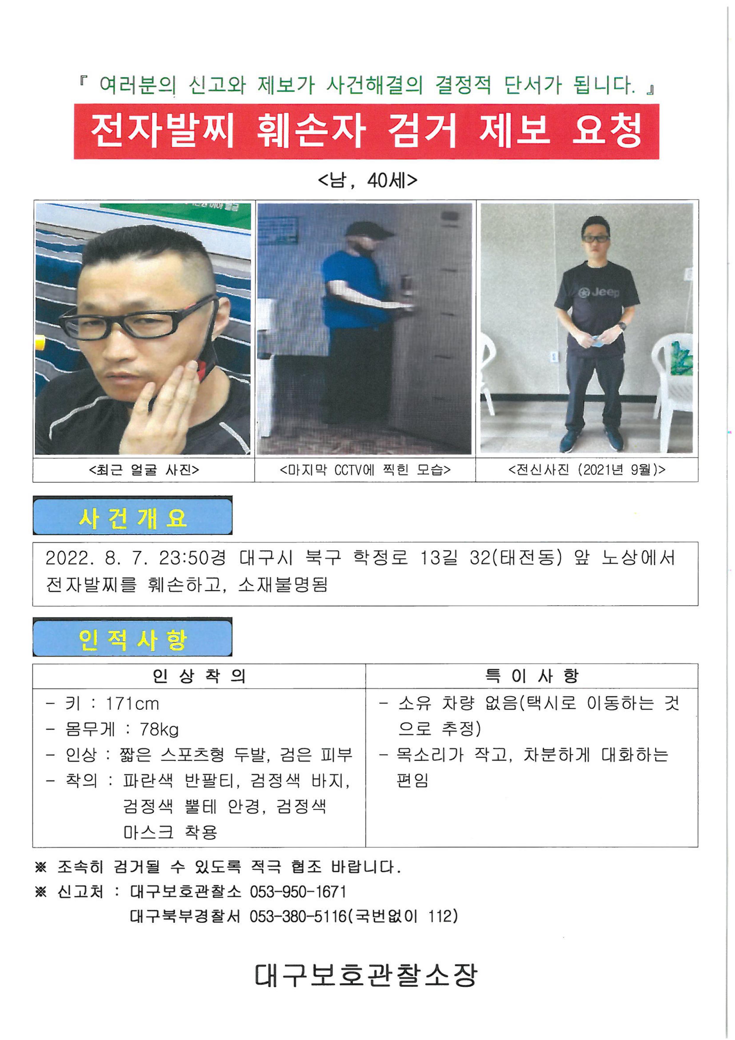 비슷한 사람을 본 사람은 대구보호관찰소(053-950-1671)나 대구북부경찰서(053-380-5116)로 신고하면 됩니다.