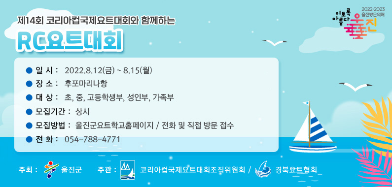 울진군은 8월 12부터 16일까지 동해 해상 일원과 독도를 돌아오는 제14회 코리아컵 국제요트대회를 개최합니다.