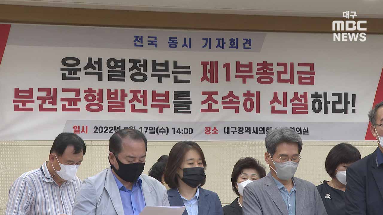 지방분권 전국회의와 지방분권운동 대구경북본부 등 시민단체들은 대구와 부산, 광주 등 전국 각지에서 동시 기자회견을 열었습니다.