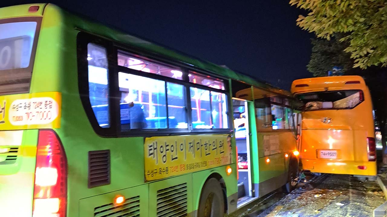 8월 22일 저녁 8시 50분쯤 경북 경산시 진량읍의 도로에서 달리던 시내버스가 갓길에 주차돼 있던 관광버스를 들이받았습니다.