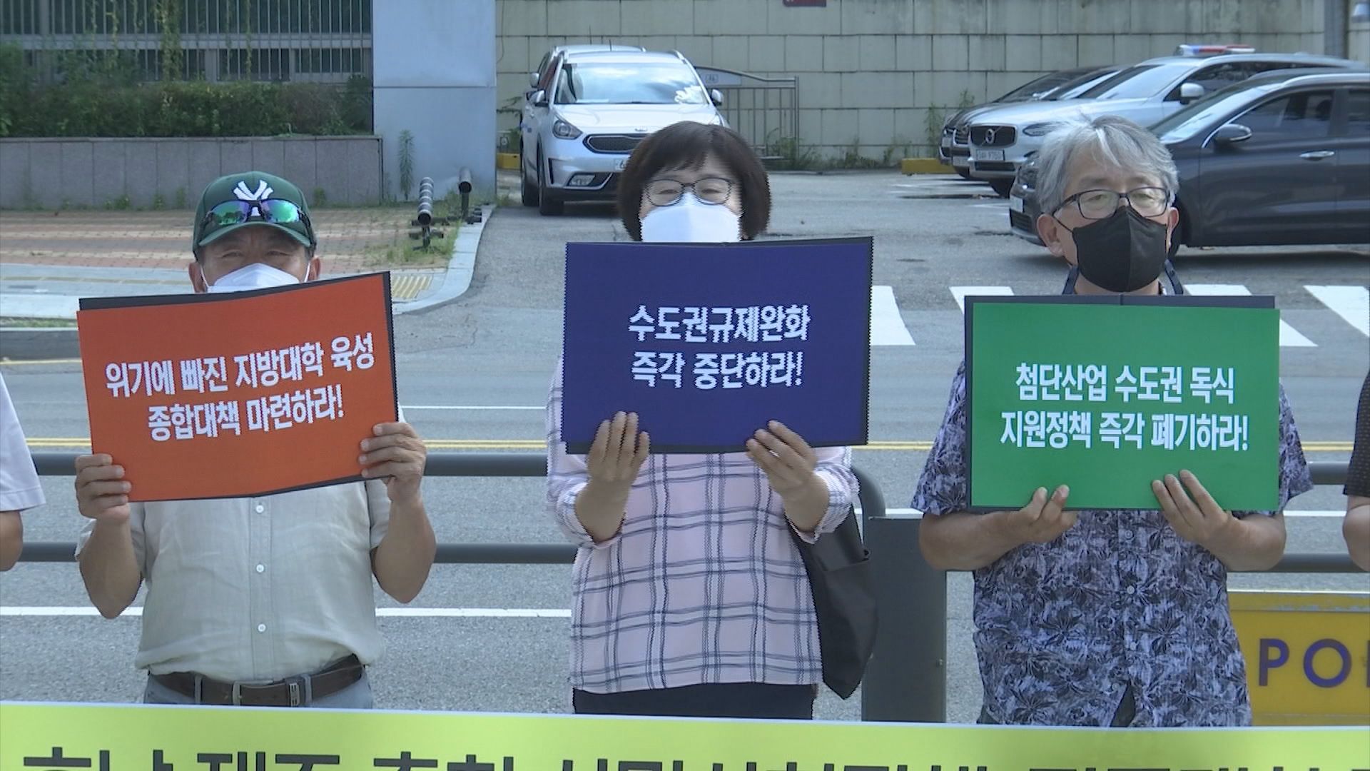 이들은 수도권 규제 완화와 첨단산업 수도권 독식 지원정책 즉각 백지화를 요구하며 국가균형발전을 최우선 국정과제로 추진해야 한다고 강조했는데요.