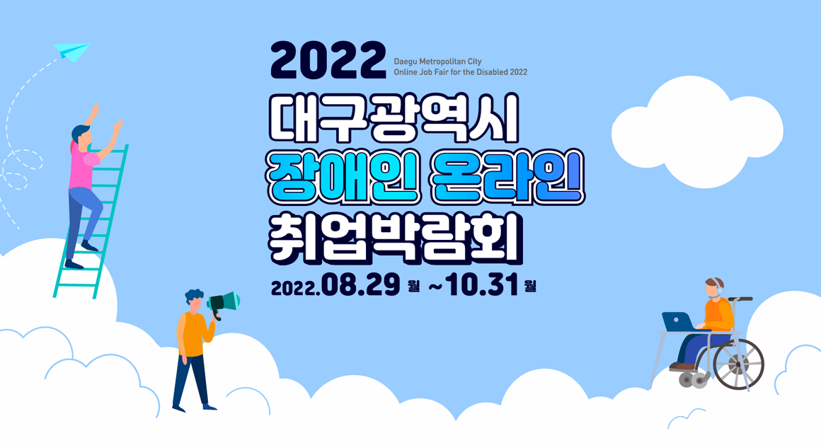 대구시는 한국장애인복지관협회 대구시협회, 한국장애인고용공단 대구지역본부와 함께 온라인을 통해 '2022 장애인 취업박람회'를 운영합니다.