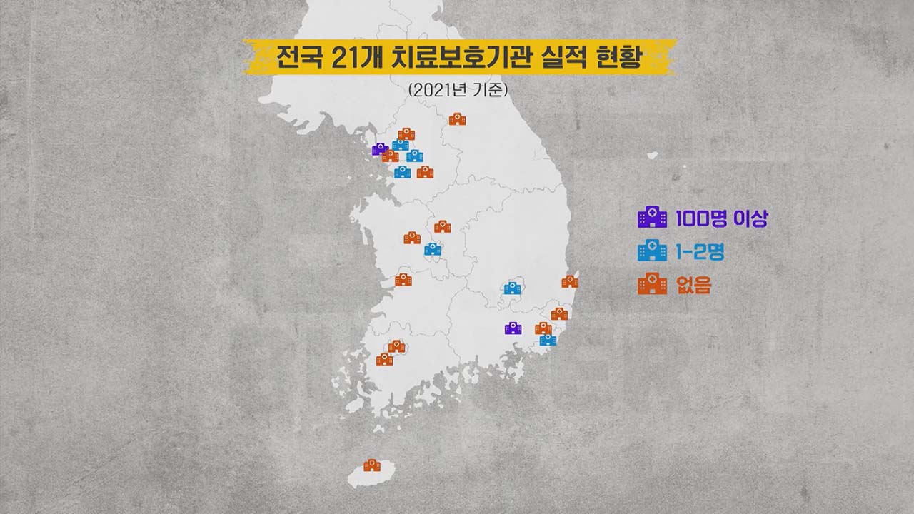 제도는 있지만 실제 치료는 많이 이뤄지지 않습니다. 현재 우리나라 치료감호 시설은 국립법무병원과 국립부곡병원 2곳입니다. 2021년 치료감호를 받은 마약사범은 단 21명이었습니다.