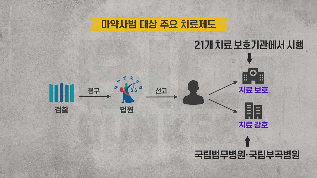 조성남 국립법무병원장 "국립병원을 제외한 치료기관은 병원이 치료하고 나서 든 비용을 지자체에서 정산해주는 시스템입니다. 시 예산이 적다 보니까 예산을 초과해버리면 정산이 어려워지는 거죠. 결국 병원 입장에서는 마약 중독자를 많이 치료할수록 계속 적자를 보는 시스템인 겁니다"