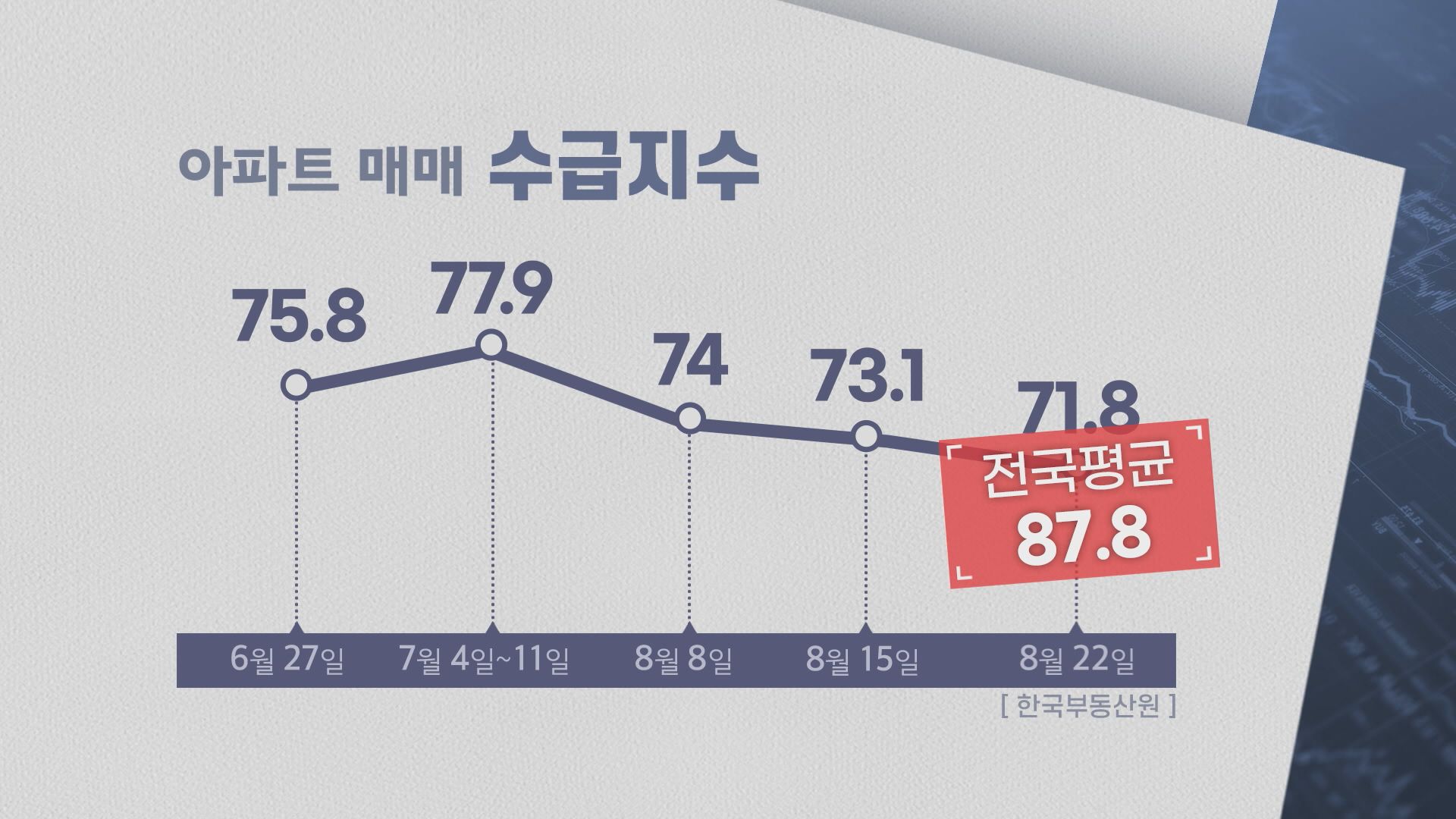 규제가 완화된 7월 초에 77.9까지 잠시 반등했지만 다시 하락세가 이어지면서 전국평균 87.8을 밑돌았고요.