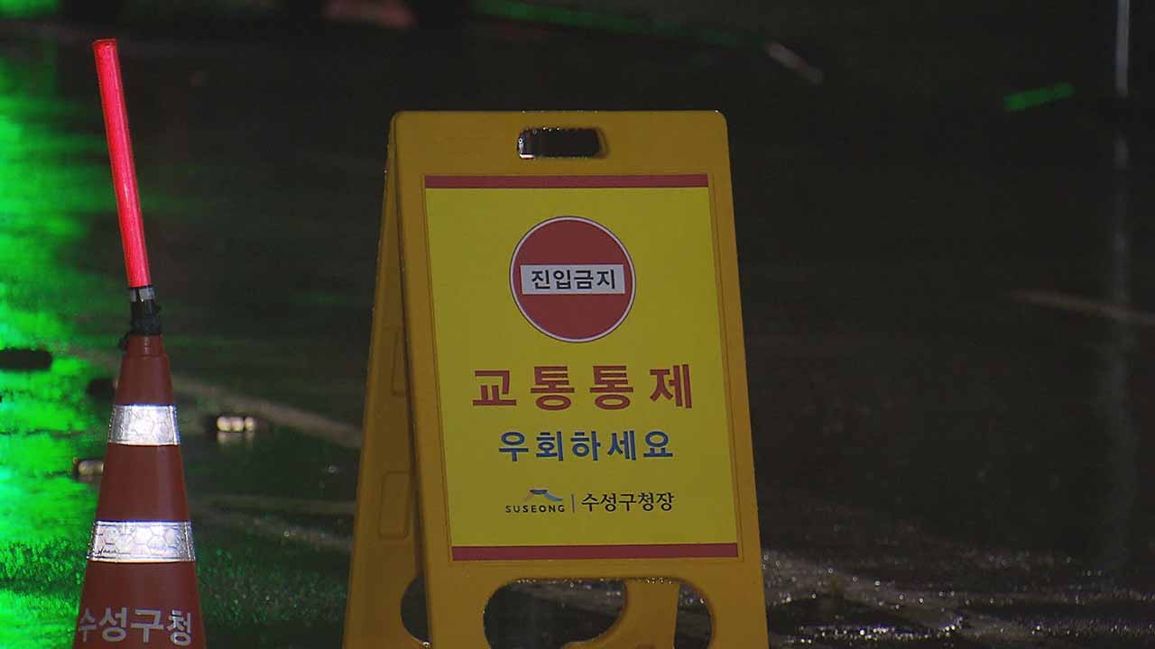 대구 경찰은 태풍이 다가오면서 9일 오전 4시쯤 가창에서 상동교 방면 신천좌안도로를 통제하고 이어 신천동로도 전면 통제했습니다.