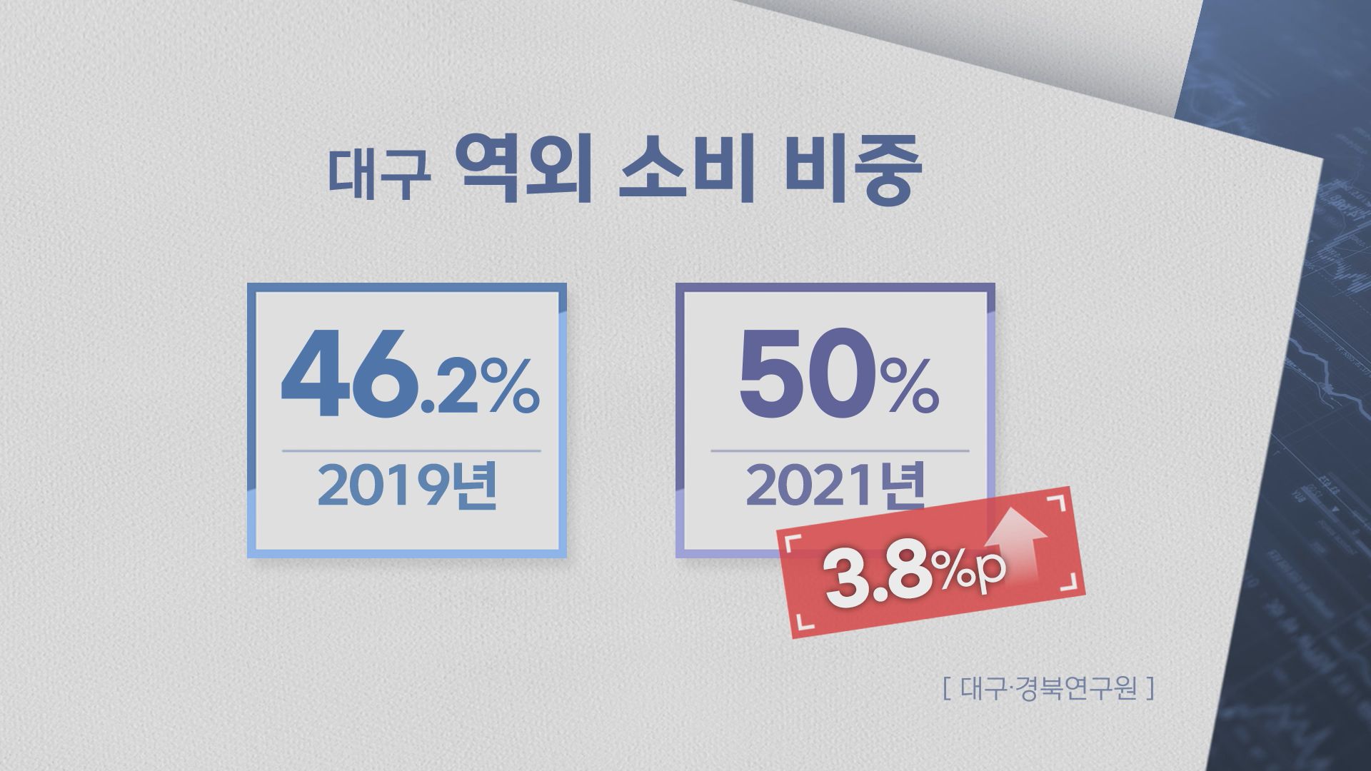 지난 2021년 기준 대구의 역외 소비 비중은 50%로 지난 2019년 46.2%와 비교해 3.8% 포인트 증가했습니다.