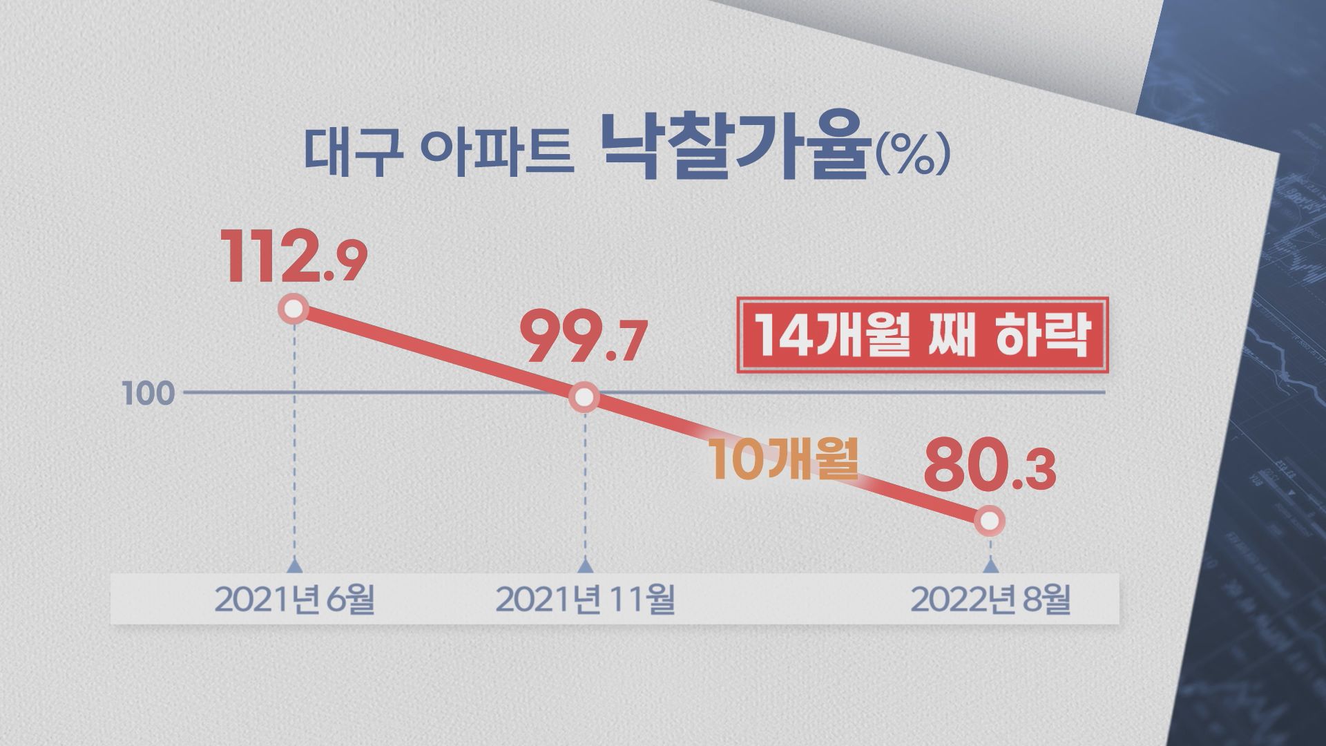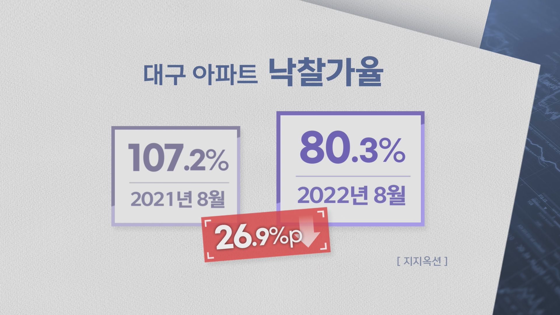 법원 경매 전문 기업인 지지옥션에 따르면, 지난 8월 대구의 아파트 낙찰가율은 80.3%로 1년 전인 107.2%와 비교해 26.9%포인트 떨어졌습니다.
