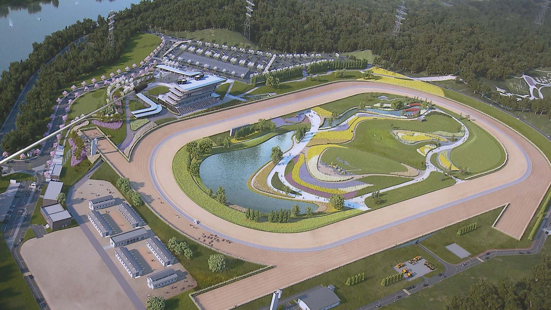 경주로와 마사, 관람대, 수변공원 등 경마 위주의 시설을 먼저 짓습니다.