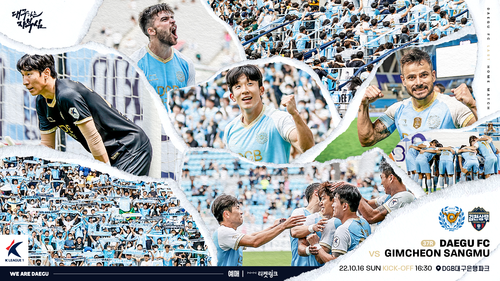 리그 11위인 김천상무를 상대로 10월 16일 오후 4시 반 DGB대구은행파크에서 하나원큐 K리그1 2022 37라운드 홈경기를 치르는 대구는 무승부만 거둬도 1부 리그 자력 잔류가 가능한 상황입니다.