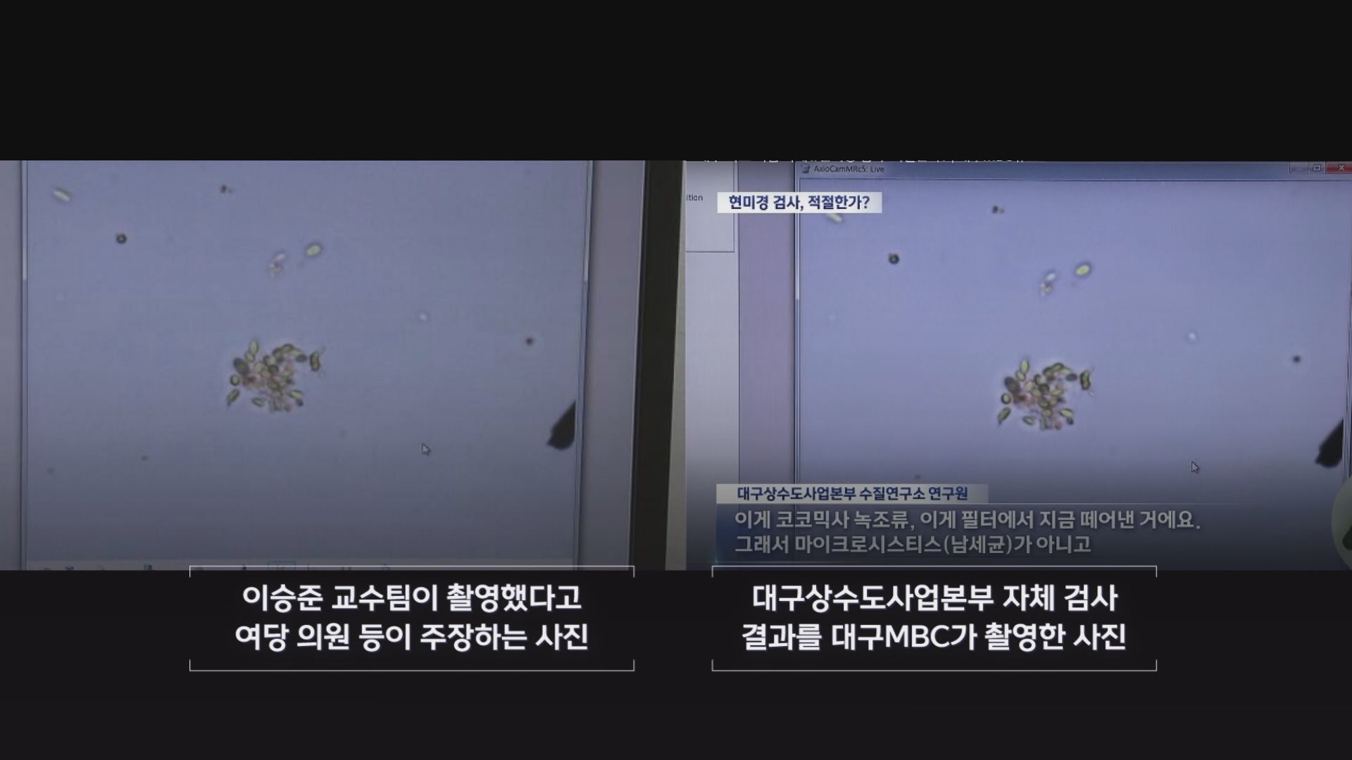 국립환경과학원과 여당은 잘못된 정보로 대구MBC의 보도를 잘못됐다는 식으로 평가하고 있는데, 그런데 문제의 수돗물 필터를 더 정확한 검사 방식으로 살펴봤더니 이 방법으로도 남세균을 확인했다고요.