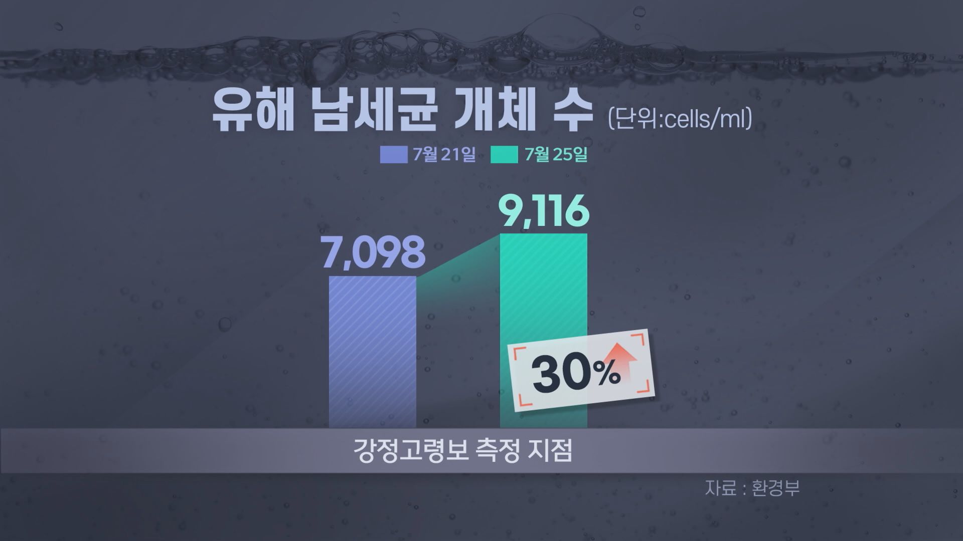 하지만 같은 날 이들 정수장과 불과 2km와 8km가량 떨어진 강정고령보 측정 지점의 유해 남세균 수는 9,116개로 나흘 전인 7,098개보다 오히려 30% 정도 증가했습니다.