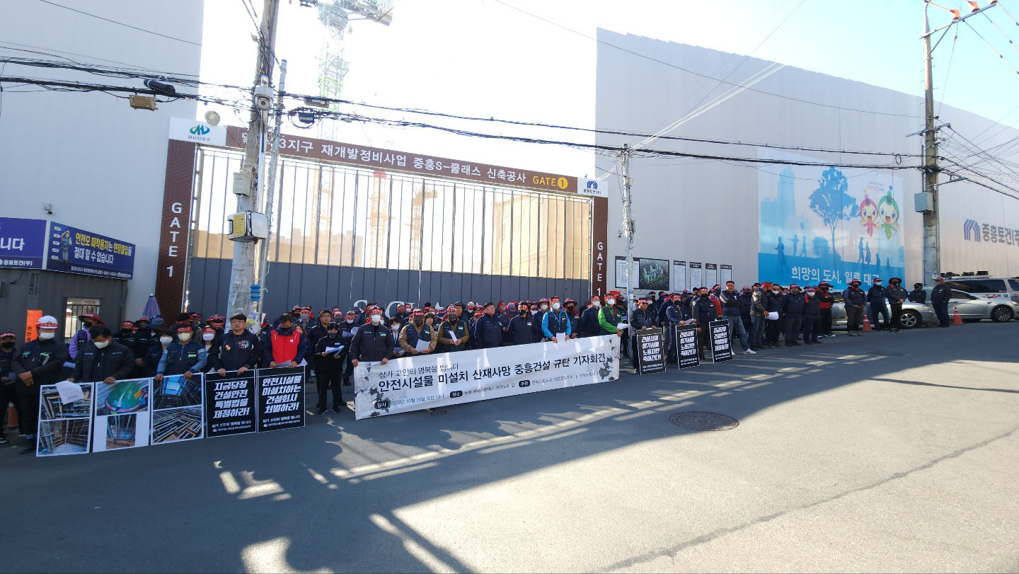 건설노조 대경지부는 기자회견을 갖고 "10월 25일 대구에서 발생한 건설 현장 사망사고는 안전 시설물 미설치 때문"이라며 건설사를 규탄했습니다.