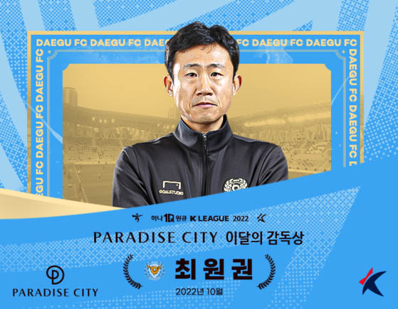 최원권 대구FC 감독대행이 K리그가 선정하는 '10월 이달의 감독상'을 받았습니다.