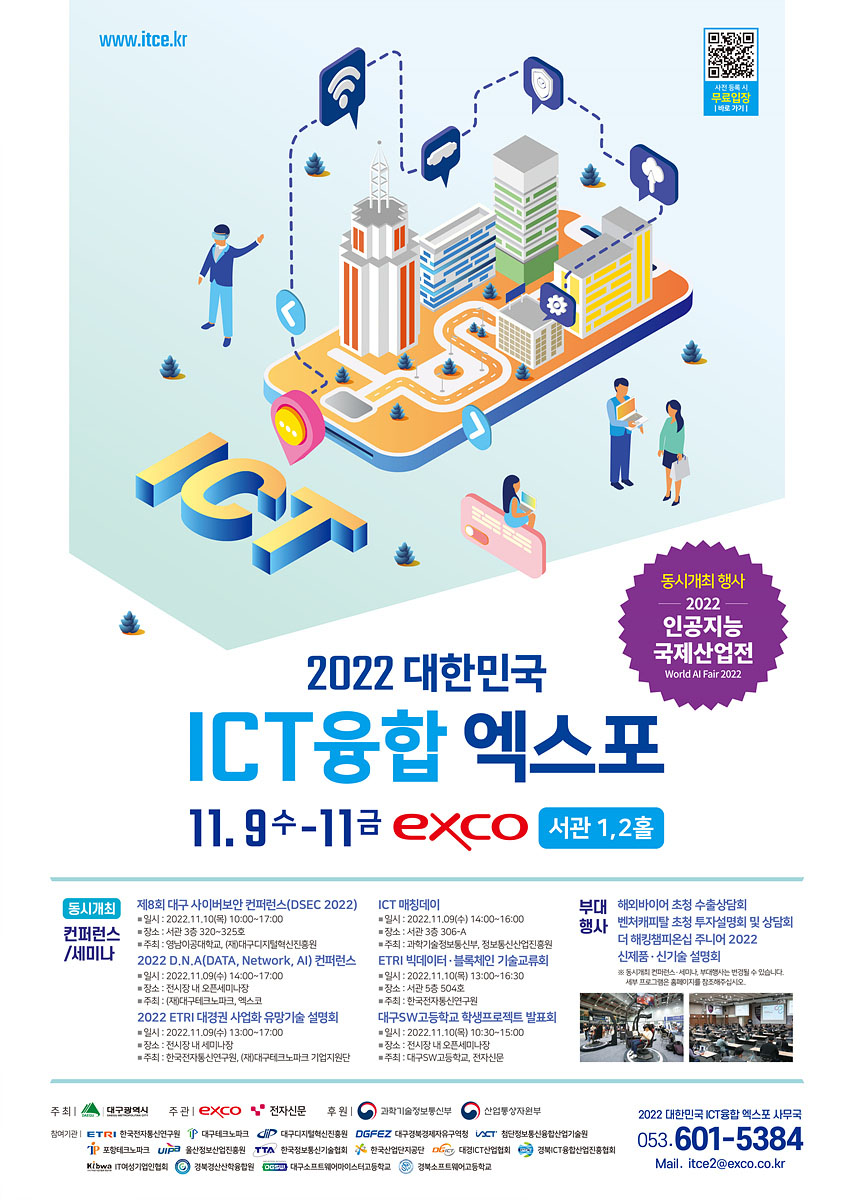 '2022 대한민국 ICT 융합 엑스포'와 '2022 인공지능 국제산업전'은 인공지능과 빅데이터, 블록체인, 메타버스, 사이버보안 등 정보통신기술 분야의 170여 개 업체가 700여 개 부스를 마련해 새로운 기술을 소개하고 정보를 교류합니다.