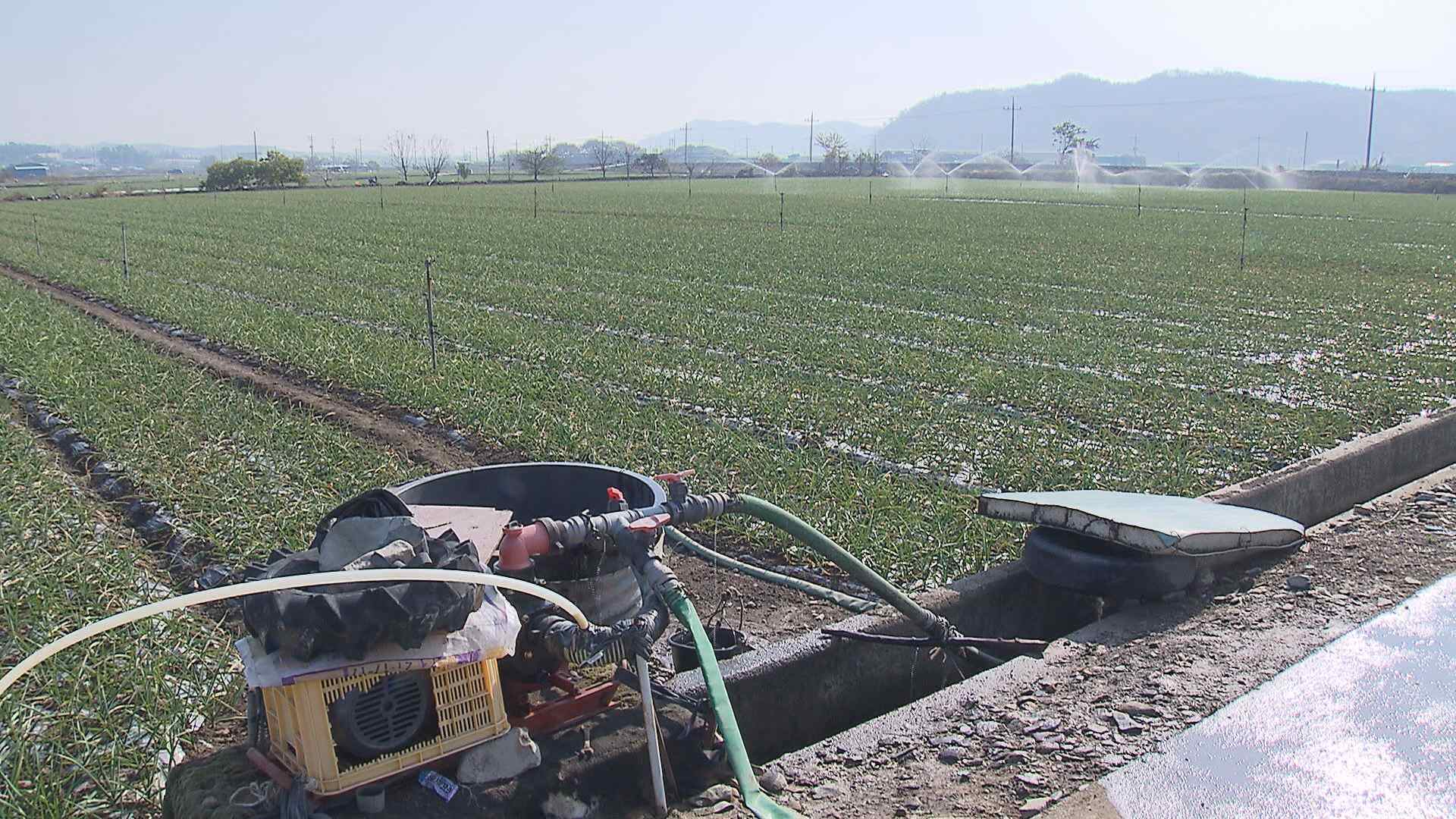 그래서 급한 대로 지하수를 끌어올려 마늘밭에 뿌리는 작업이 들녘 곳곳에서 벌어지고 있었습니다.