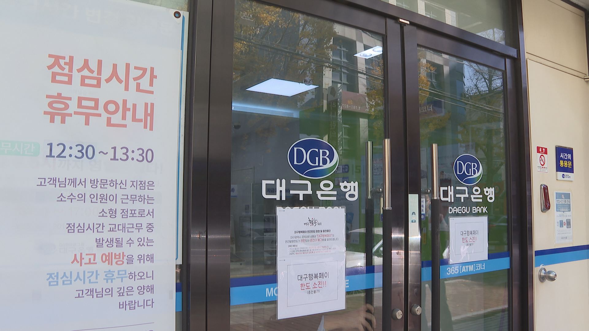 점심시간이 시작되는 낮 12시 30분이 되자 점포 출입문을 잠그고 블라인드를 내렸고요. 업무처리에 바빴던 직원들도 창구를 비웠습니다.