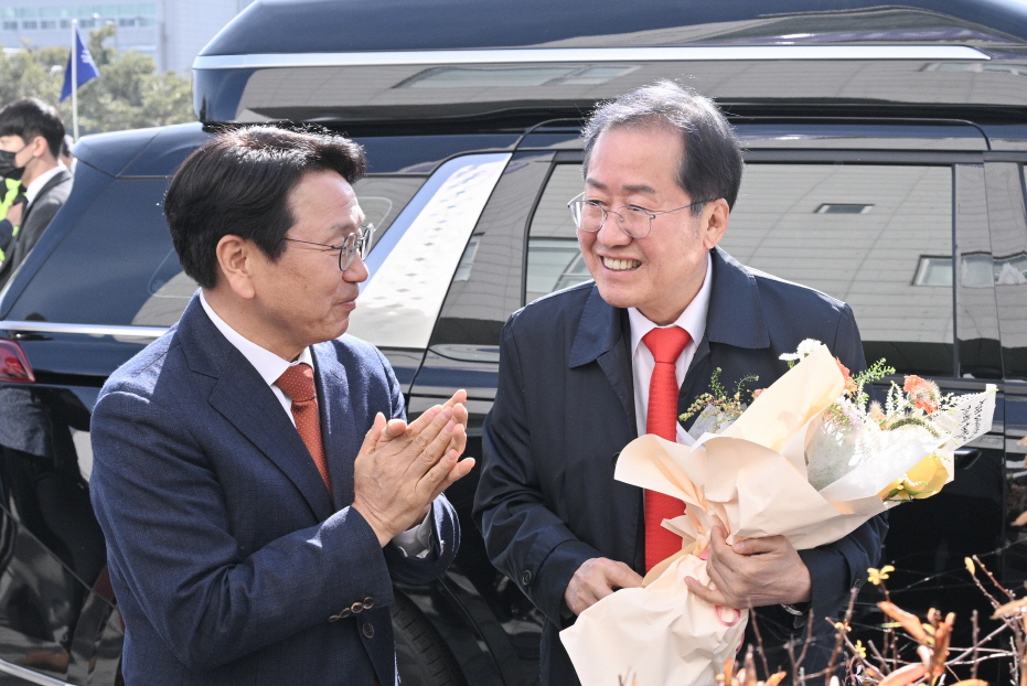 강 시장은 "누구보다 지역 소멸을 걱정하고 국가균형발전을 위해 노력하는 홍 시장과 국가 질병이라 불리는 지역소멸을 해소하기 위해 손잡겠다"고 답했습니다.