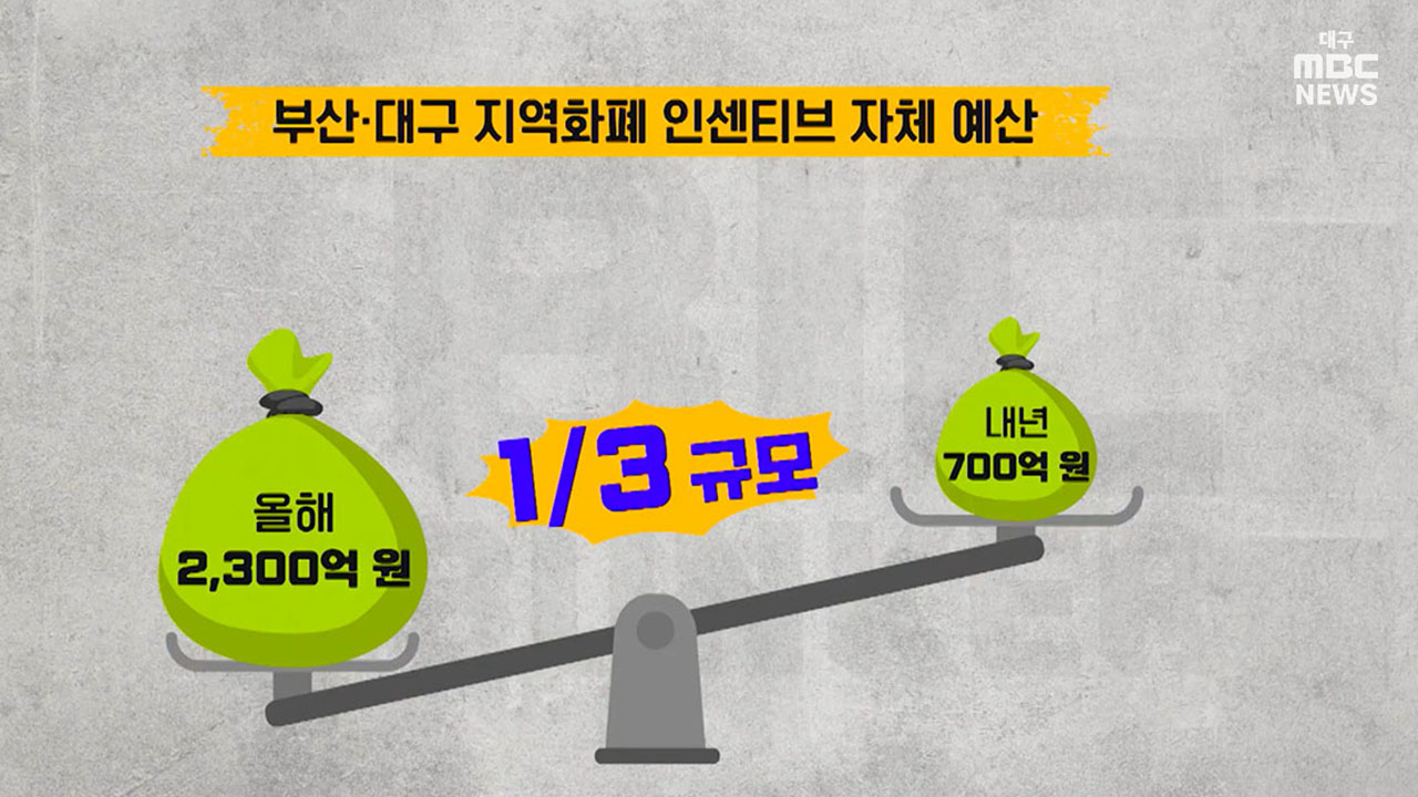 대구 2023년 지역화폐 예산 2백억 원, 부산은 5백억 원···2022년의 1/3 수준