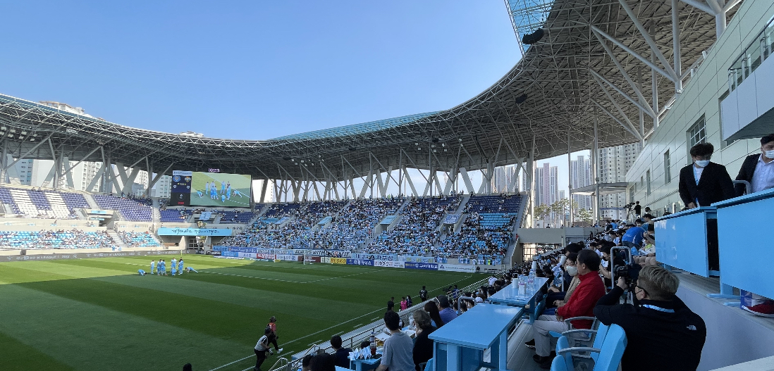 바닥이 철제로 구성되다 보니 이곳을 찾는 팬들은 대구FC의 홈구장 대팍에서 흔히 볼 수 있는 '쿵쿵골'과 유사한 응원을 펼치며 경기장 특징을 최대한 활용하는 분위기입니다.