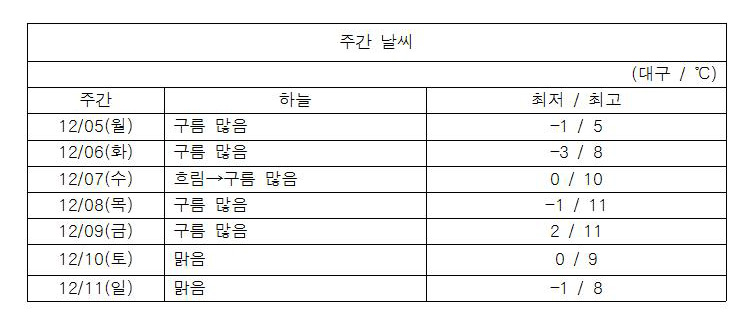 12월 1주 차 대구·경북 ‘날씨 체크’하고 가세요.