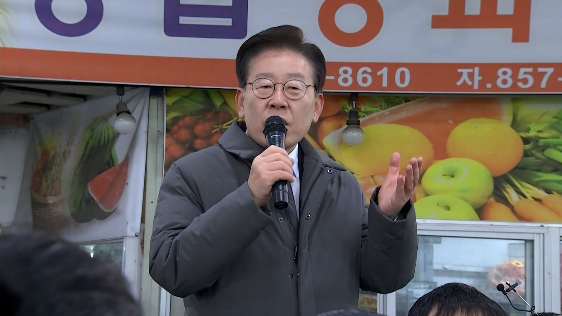 이 대표는 연설에 앞서 20여 분간 중앙신시장 내 상점을 돌며 “영업도 잘돼서 새해는 나아졌으면 좋겠다”라고 말하는 등 상인들과 인사했습니다.
